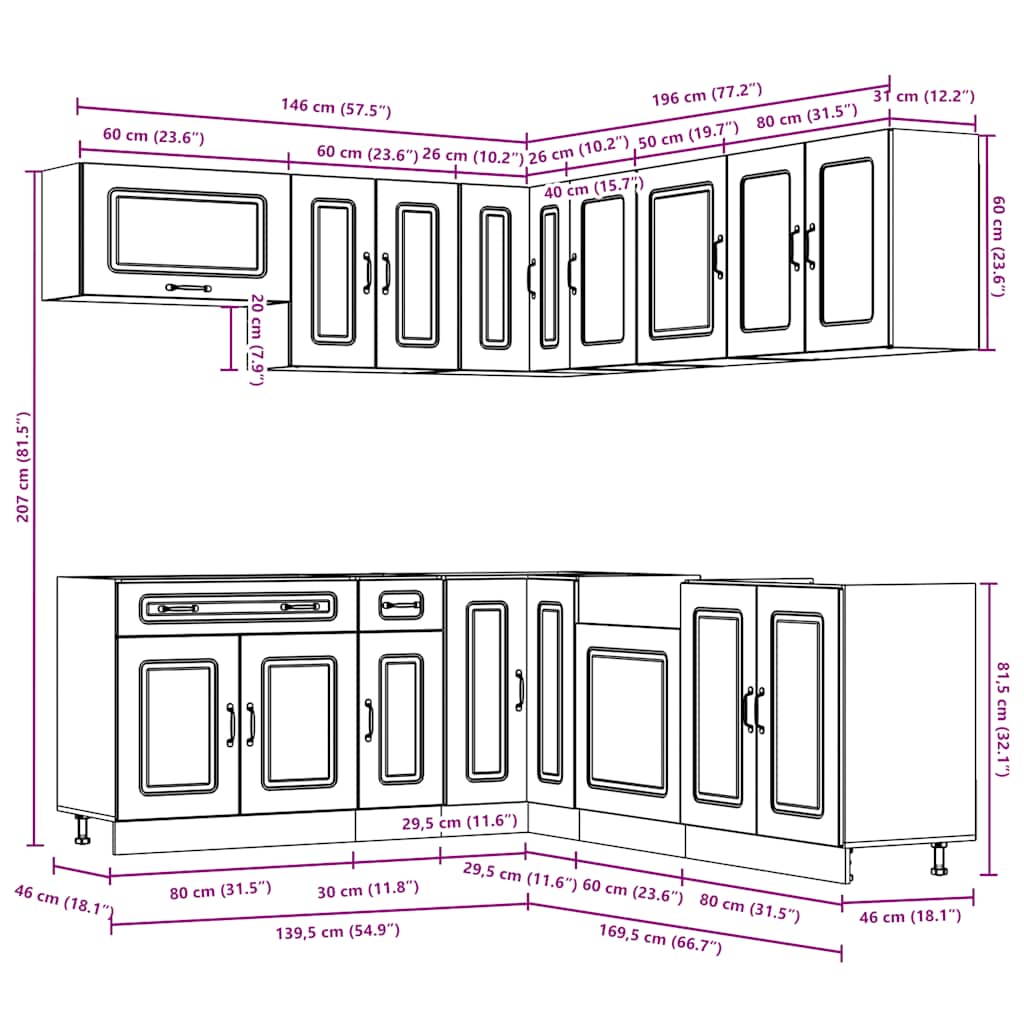 11 Piece Kitchen Cabinet Set Kalmar Smoked Oak Engineered Wood