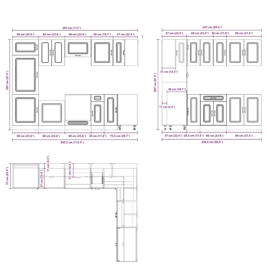 - 1 x kitchen corner base cabinet: 75.5 x 75.5 x 81.5 cm (W x D x H)
