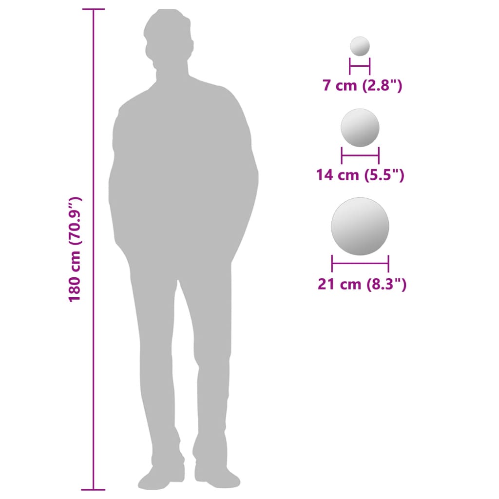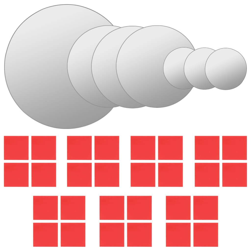 Turn an empty wall into a unique feature with our 7-piece mirror set! With a clean, unframed deign, these round mirrors will add a pinch of minimalistic aesthetic to your home decor. Get creative and arrange the mirrors in any pattern you like to suit your interior style! Decorated with these mirrors, your room will get a spacious look and feel. The mirror edges are ground to give them a clean look. Thanks to the included stickers, the wall mirrors can be easily mounted.