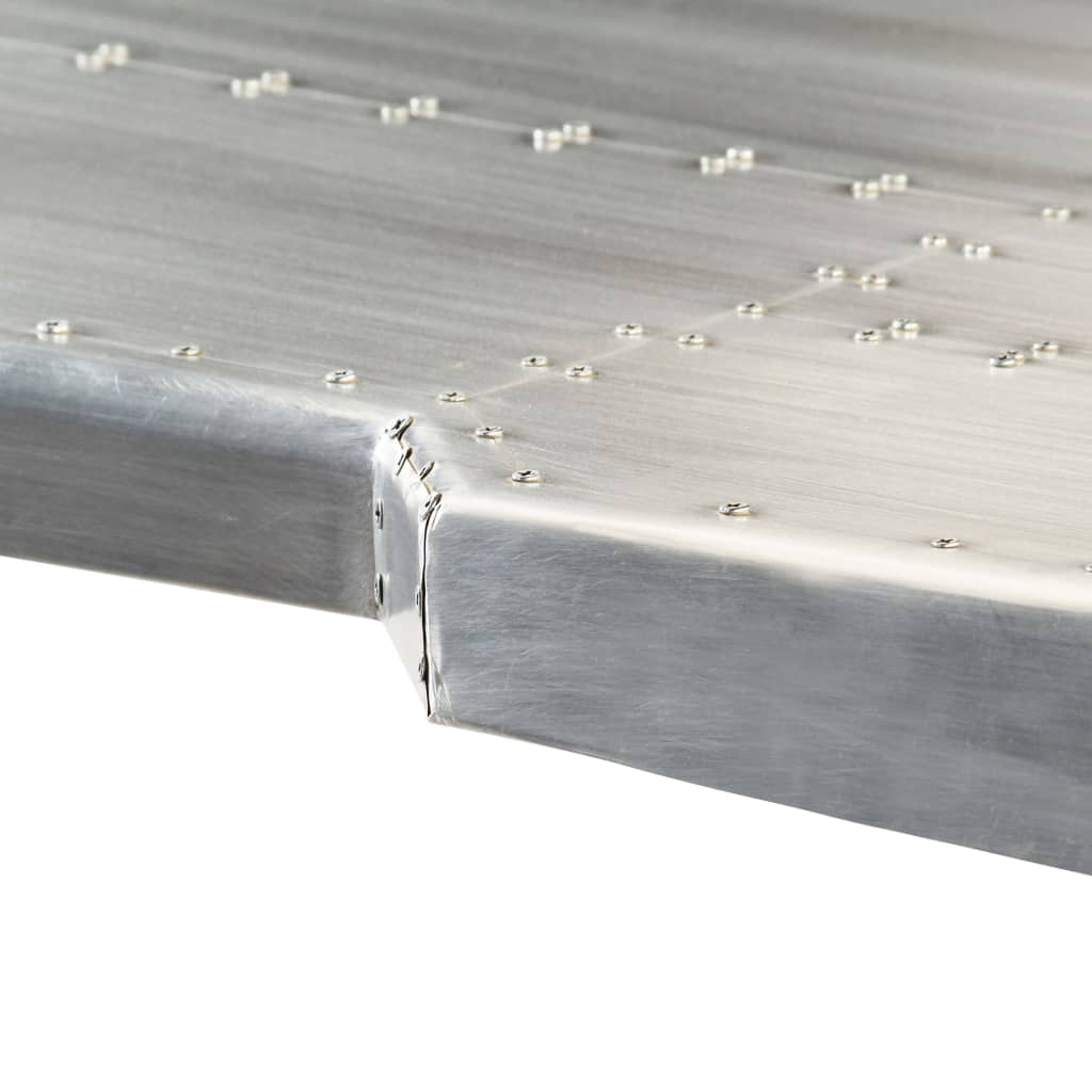 This vintage-style Aviator writing desk has a timeless design and will bring a touch of industrial style into your study room or office. The aircraft-style desk is made of solid mango wood, and its surface is clad with the patchwork of polished aluminium panels, accented with the exposed steel screws, which makes it extremely durable. The steel legs in brass colour and patterned rivets give the airman table an industrial look. It has a large table top which provides ample space for placing your files, papers, books or other belongings. The writing desk is easy to assemble. Please note: The pattern of the rivets may vary from piece to piece, making each of our tables unique. The delivery is random, ensuring the exclusivity and individuality of your product.