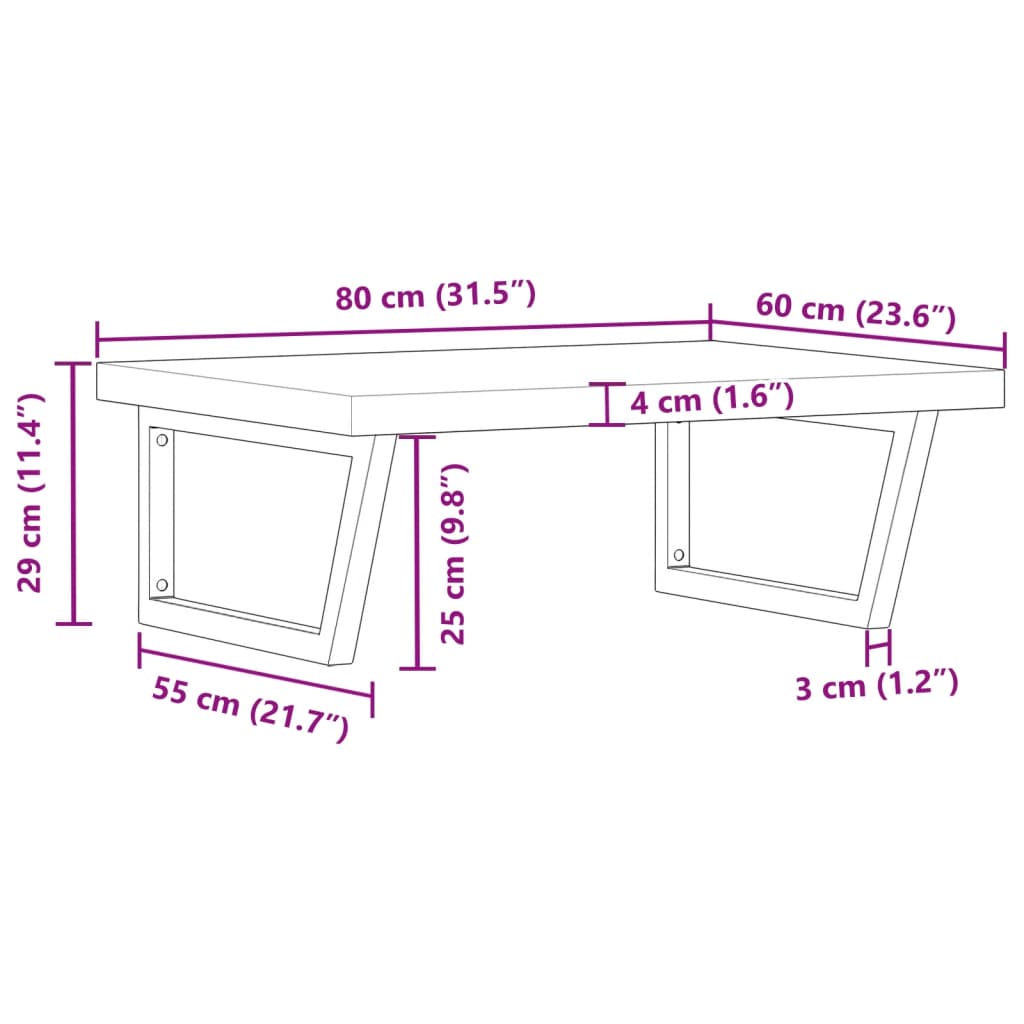 The wall mounted basin shelf securely attaches to the wall, providing an elegant and space-saving solution for your bathroom. Sturdy and long-lasting: This basin shelf is combined with a steel structure and a solid acacia wood top, making it sturdy, stable, and long-lasting.Space-saving: The floating basin shelf has ample space to store creams and small items. Thanks to the trapezium shape, you can hang towels or other things on the support to save space.Easy to use: The countertop comes undrilled to allow the basin to be mounted on the left, right, or in the centre, depending on your room's requirements. Thanks to the pre-drilled holes in the holder, it can be easily assembled with the tabletop and mounted on the wall.Wide applications: Thanks to its modern design, it provides additional space for various types of bathrooms. Good to know:Screws are not included, you can purchase the screws separately based on the information provided below.Wall attachment: 2 pcs M8 expansion screws per bracketWooden top: 2 pcs M5x18 screws (T=2) or 2 pcs M5x20 screws (T=2,5/4cm) per bracket
