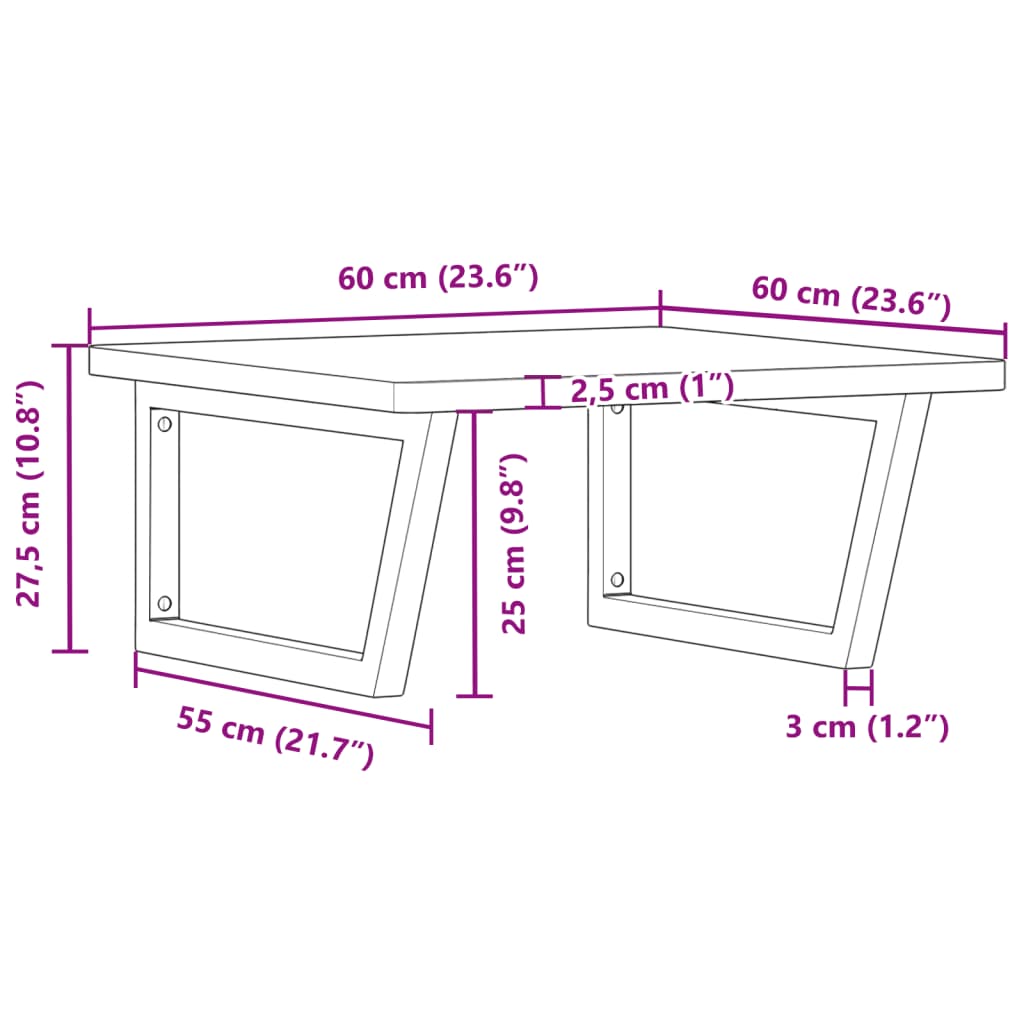 The wall mounted basin shelf securely attaches to the wall, providing an elegant and space-saving solution for your bathroom. Sturdy and long-lasting: This basin shelf is combined with a steel structure and a solid beech wood top, making it sturdy, stable, and long-lasting. Space-saving: The floating basin shelf has ample space to store creams and small items. Thanks to the trapezium shape, you can hang towels or other things on the support to save space. Easy to use: The countertop comes undrilled to allow the basin to be mounted on the left, right, or in the centre, depending on your room's requirements. Thanks to the pre-drilled holes in the holder, it can be easily assembled with the tabletop and mounted on the wall. Wide applications: Thanks to its modern design, it provides additional space for various types of bathrooms. Good to know:Screws are not included, you can purchase the screws separately based on the information provided below. Wall attachment: 2 pcs M8 expansion screws per bracket Wooden top: 2 pcs M5x18 screws (T=2) or 2 pcs M5x20 screws (T=2,5/4cm) per bracket