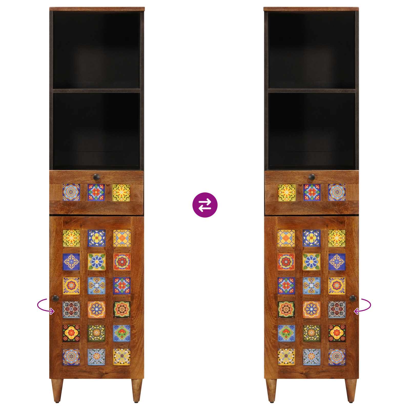 This modern bathroom cabinet exudes simplicity and functionality, making it a striking addition to any contemporary bathroom setting. Its sleek design is evident in its clean lines and minimal ornamentation, seamlessly fitting into compact spaces while enhancing the room's aesthetic. The cabinet offers versatile storage solutions, perfect for families or individuals aiming to keep their bathroom essentials neatly organized and within easy reach. Solid Mango Wood: Both the surface and doors of this bathroom cabinet are crafted from solid mango wood. This material not only provides a robust and durable structure but also adds a natural and elegant touch to the bathroom decor. Its resilience ensures the cabinet withstands daily wear and tear, offering long-term use and maintaining its stylish appearance. Functional Design: The cabinet features a rectangular shape with thoughtful dimensions of 38 x 33.5 x 160 cm, ideal for fitting into narrow bathrooms without compromising on storage capacity. It seamlessly blends fashion and practicality, allowing users to enhance their bathroom ambiance while enjoying a tidy space. Metal Legs: The cabinet stands on sturdy metal legs painted in black, providing a striking contrast to the natural wood finish. These legs ensure the unit's stability and elevate it slightly, making it easier to clean underneath and adding a modern touch to its overall design. Integration Capabilities: Designed to blend with other modern furnishings, this cabinet's minimalist approach coordinates effortlessly with existing bathroom decor. Whether paired with fresh linens or contemporary fixtures, it complements a wide array of styles, delivering both utility and aesthetics. Easy Maintenance: The cabinet is designed for indoor use and is easy to maintain. Simply wipe it down with a damp cloth to keep it clean and preserve its pristine condition. This minimal upkeep ensures a stylish look without the hassle of complicated cleaning routines, offering convenience to busy homeowners.