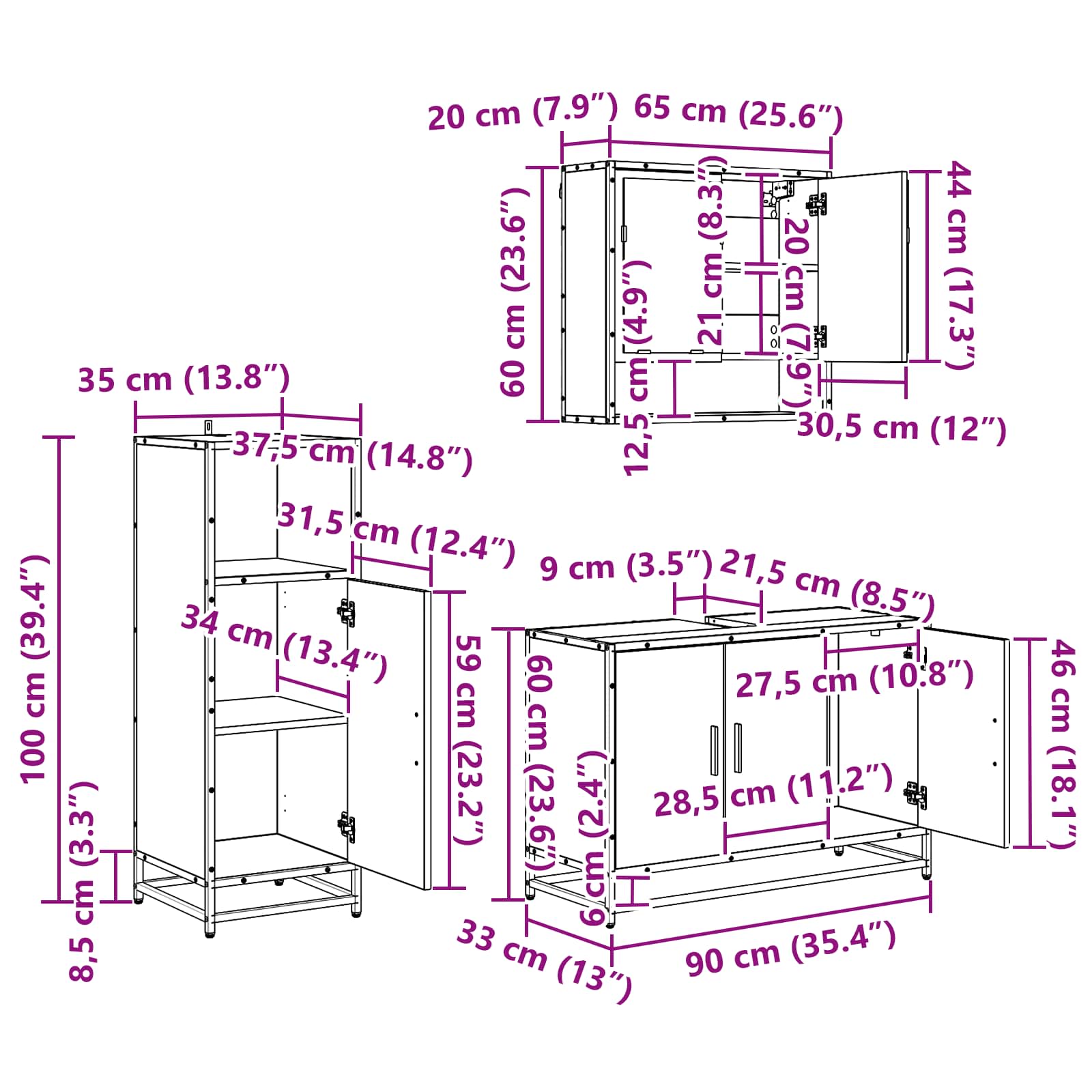 Bathroom Furniture Set 3 pcs Black Oak Engineered Wood