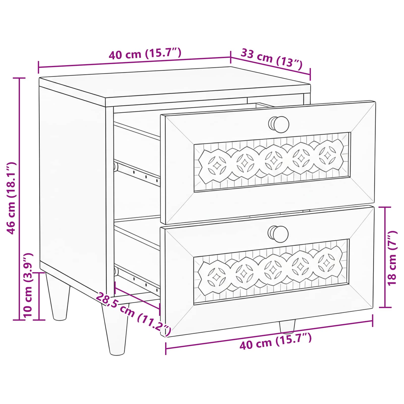 - Overall dimensions: 40 x 33 x 46 cm (L x W x H)