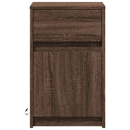 Bedside Cabinet with LED Lights Brown Oak Engineered Wood