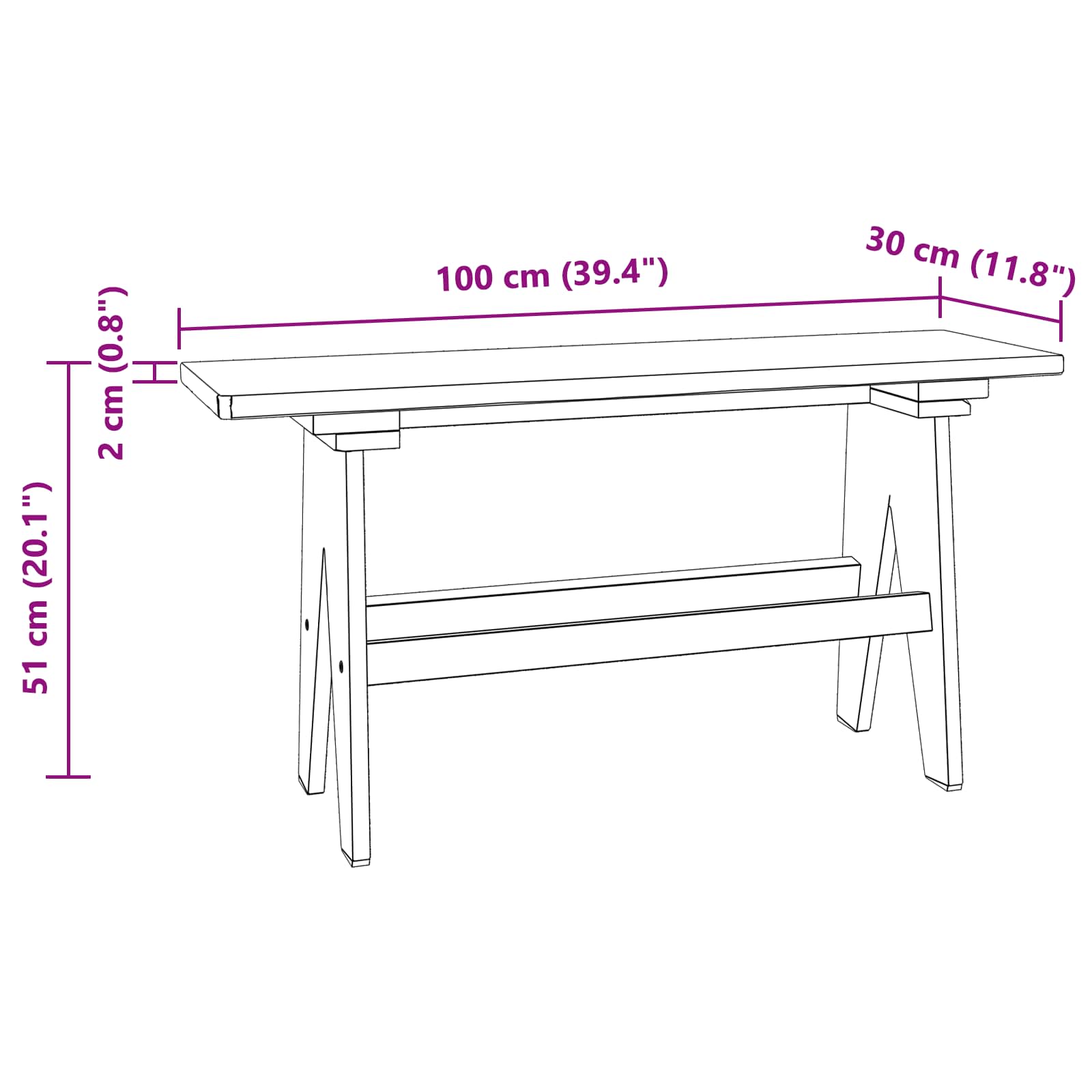 - Overall dimensions: 100 x 30 x 51 cm (L x W x H)