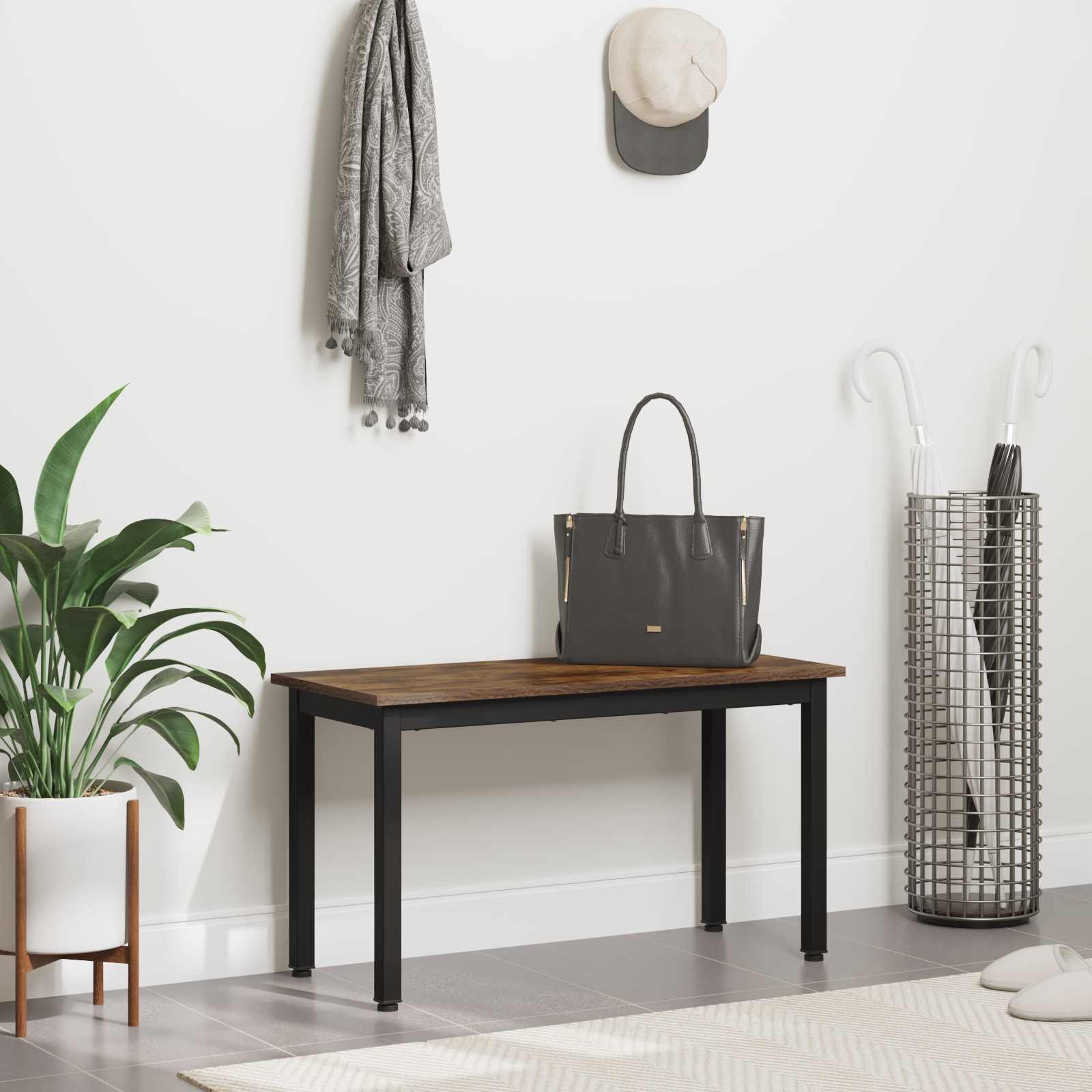 This Modern Dining Bench presents a chic and functional addition for both living and dining rooms, showcasing a seamless blend of simplicity and style within its rectangular form. With its clean lines and minimalist aura, it complements a wide range of interior styles. Designed for indoor use, this bench embodies contemporary elegance, perfect for gatherings or quiet moments alike. Materials: Constructed with a top surface of engineered wood, this bench offers a smooth and sophisticated finish, while being easy to maintain. The combination of materials ensures long-term durability and aesthetic appeal. Included Components: The bench features metal legs that provide sturdy support and stability. The frame's unique square leg design promotes stability while adding to the bench’s modern appeal, making it a stylish centerpiece in any setting. Features /Function /Design: This bench embodies a fusion of simplicity and functionality. Its rectangular shape pairs effortlessly with various dining tables, enhancing the beauty and usability of the meal area. Its durable build withstands daily use while maintaining elegance. Recommended Uses: Ideal for adding seating in both living and dining rooms, this bench becomes a versatile piece. It encourages communal gatherings, offering a practical seating solution during family meals or social events. Care &Maintenance: Simple to care for, thanks to a surface that cleans effectively with a damp cloth. Regular wiping keeps it looking polished, ensuring it retains its charm over time.