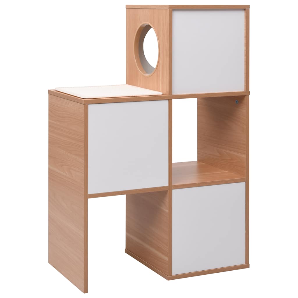 Assembly is quick and straightforward, giving you more time to witness your cats enjoying their new favourite retreat. Plus, with a captivating brown finish and white accents, this cat condo not only serves as a centrepiece for your pets, but also enhances your living space.