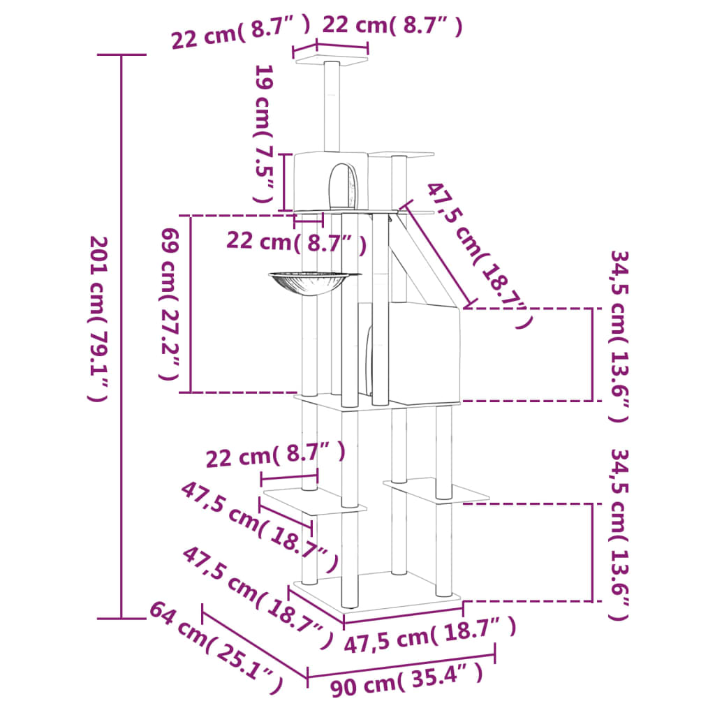 Cat Tree with Sisal Scratching Posts Dark Grey 201 cm