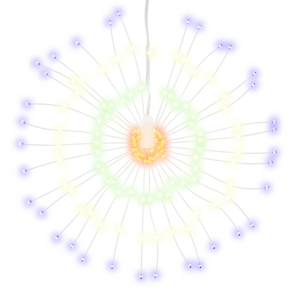 Create a festive atmosphere around your house during Christmas with the starburst light! Multi-function remote control: The energy-saving LED starburst light has 8 different lighting effects (combination, in wave, sequential, slow glow, chasing/running water, slow fade, twinkle/flash and steady on), you can switch the lighting modes with the remote control (Battery not included. Use CR2025 coin cell battery) to create different holiday atmospheres.High flexibility & easy to DIY: The Christmas lighting is made of good-quality flexible copper wires, making it easy to bend into any shapes you like, such as bouquets, fireworks, etc.Timing function: The firework light has a timer button on the remote control that allows you to control the timing of the lights. The garden light will be 6 hours on and 18 hours off per day, so you don't have to worry about wasting any energy.Waterproof: The Xmas light and the battery case are waterproof and can be used indoors and outdoors. Thanks to the hook on the battery case, you can hang it anywhere.Wide applications: The Christmas fairy light is perfect for parties, Christmas, Halloween, eaves, yards, trees, gardens, and outdoor decorations.