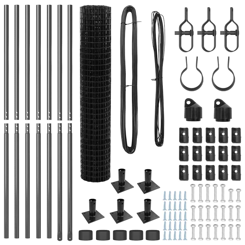 Fence with Post Grey 1.6 x 10 m Steel and PVC