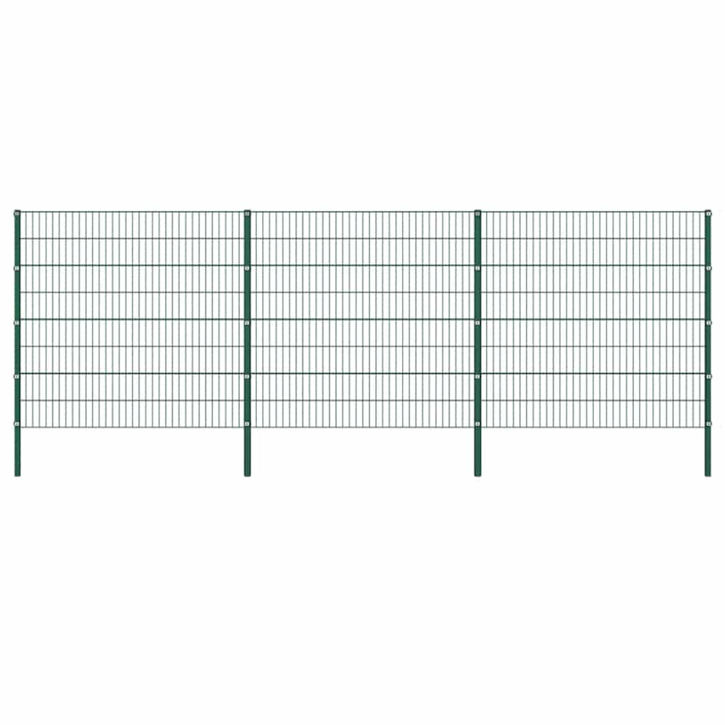 Fence Panel with Posts Iron 522x160 cm Green