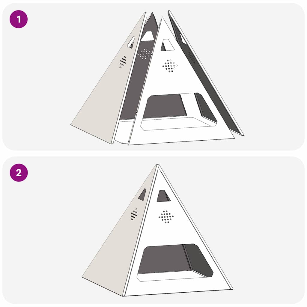 This Modern Pyramid Wood-Burning Fire Pit is designed to define outdoor experiences with elegance and functionality. Its pyramid shape highlights a unique contemporary style, ideal for garden and terrace settings, providing warmth and a vibrant atmosphere for cozy gatherings. This fire pit presents a blend of minimalist aesthetics and practical usage, built with heat-resistant steel to withstand outdoor elements, making it the go-to choice for outdoor enthusiasts seeking style and utility. Heat-Resistant Steel: The fire pit is crafted from high-quality steel known for its heat resistance, ensuring resilience against the outdoor elements. This material choice allows it to maintain its structure and functionality even during prolonged exposure to high temperatures and weather variations, making it a reliable centerpiece for any garden or terrace. Pyramid Shape Design: Its striking pyramid shape not only provides an elegant touch to outdoor surroundings but also optimizes wood placement for efficient burning. The innovative design enhances the visual appeal while ensuring the fire pit remains a functional art piece in any outdoor space. Open Air Ventilation: This feature is meticulously integrated to improve air circulation around the fire. By facilitating efficient smoke release, it also enhances the combustion process, ensuring a more enjoyable and less smoky experience, allowing for clearer views and cleaner air for you and your guests. Portability: Weighing just the right amount for convenient transportation, this fire pit can be easily moved to your desired outdoor location. Whether you’re hosting a garden party or an evening gathering, its portability makes it an adaptable choice for any social event. Simple Maintenance: Keeping the fire pit clean is uncomplicated with basic care and maintenance instructions. A gentle wipe using a damp cloth keeps it looking pristine, and it’s crucial to dry the surface completely to prevent or other concerns, thus prolonging its lifespan even with regular use outdoors.