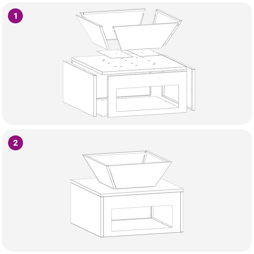 This outdoor fire pit, made from robust steel, is engineered to withstand high temperatures, providing warmth and ambiance for outdoor gatherings. Its cubic form and modern style with clean lines and minimal ornamentation make it a sleek addition to any garden or terrace setting. Heat Resistant: Crafted from durable steel, this fire pit is well-suited for handling intense flames, ensuring it remains intact even during robust festive evenings. The material's reliability extends its service life, reducing the need for frequent replacements or repairs, providing peace of mind during use. Modern Design: Emphasizing simplicity and functionality, the fire pit features a geometric cubic shape that seamlessly fits into contemporary outdoor settings. Its minimalist form accentuates clean aesthetics, allowing it to blend effortlessly with various garden decors. Open Design Ventilation: Designed with natural ventilation in mind, the fire pit promotes effective airflow and smoke release. This ensures a more enjoyable experience as smoke is directed away from guests, minimizing discomfort and enhancing the social ambiance. Durable Construction: This fire pit boasts a robust construction, designed to last through many outdoor seasons. Built to withstand external elements, it will maintain its structural integrity over time, providing consistent function and style. Easy Assembly: The fire pit necessitates assembly, which requires two individuals for setup. Utilizing a standard screwdriver, users can quickly and securely assemble the unit, ensuring stability and safety during gatherings. Its straightforward design simplifies the process, making the fire pit ready for use right after assembly.