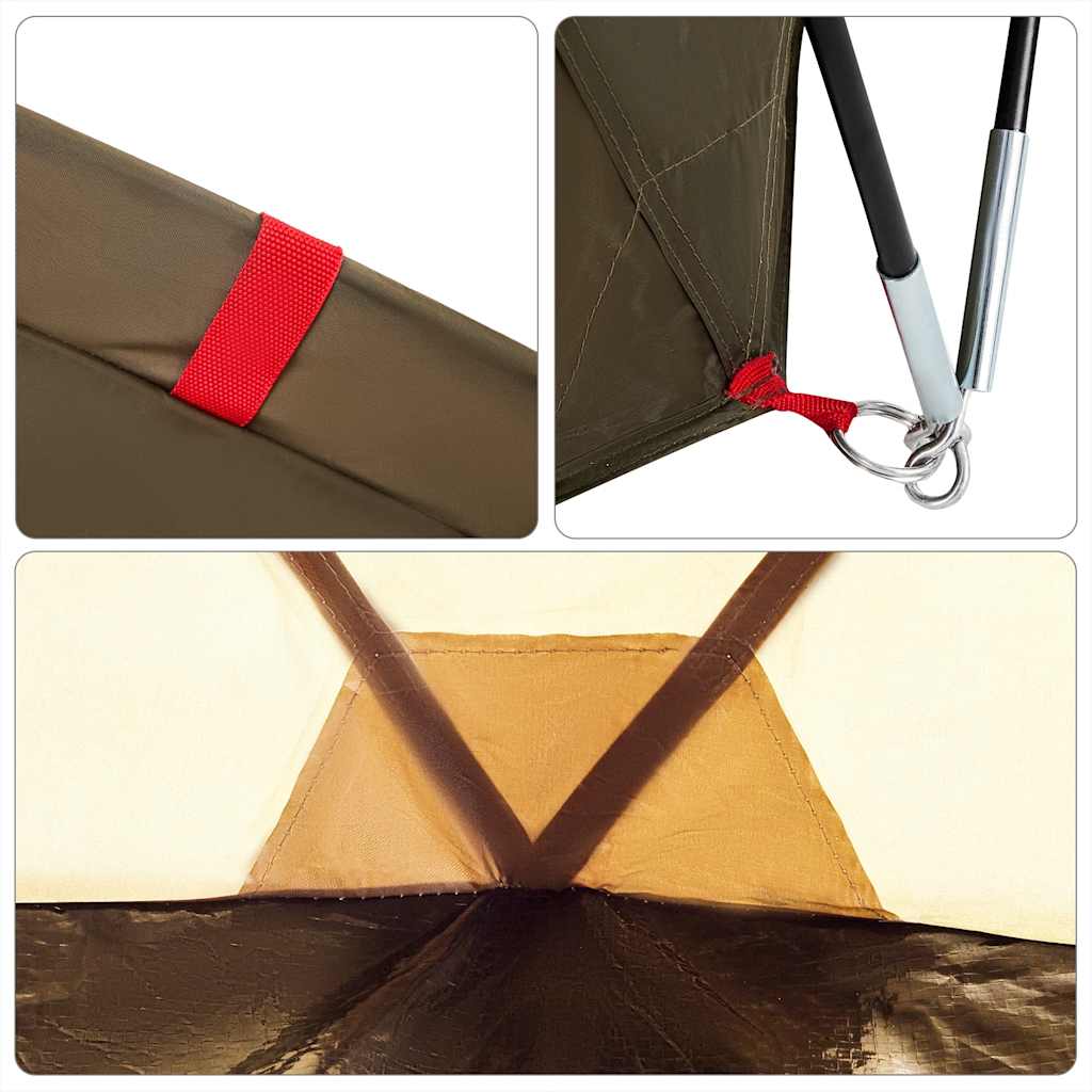 This fishing tent is perfect for creating some shade and protection from the sun's harmful UV rays when fishing. All-round waterproof design: This camping tent, made from polyester with a PU coating, is waterproof and wind resistant. The taped seams effectively prevent rainwater infiltration, while the heavy-duty ground sheet helps maintain a dry and comfortable interior.Easy access: The zippered door allows for easy access. You can roll it up and secure it with the door toggles. It also promotes airflow and provides ample natural light.Stable and safe: Secure your tent firmly to the ground with the stakes and guy ropes provided to ensure stability and safety.Lightweight and portable: The foldable and lightweight design allows you to easily pack the tent and store it in the included carry bag for easy transport.Easy setup and takedown: Setting up and taking down the tent is a breeze thanks to the highly flexible and lightweight fibreglass poles and the convenient pin-and-ring connection system. Warning:Keep all flame and heat sources away from this product fabric.