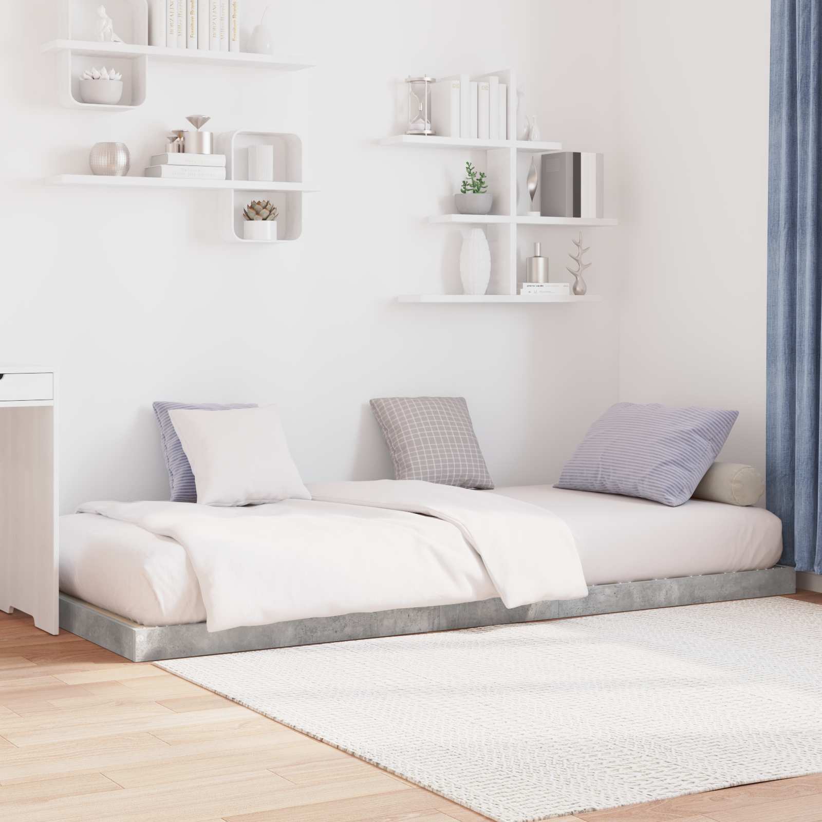 Floor Bed Frame Concrete Grey 100 x 200 cm Engineered Wood