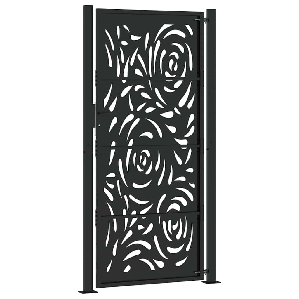 This garden gate, featuring a perfect combination of strength and elegance, makes an ideal entry point for the fence around your garden or patio. Durable material: Steel is an exceptionally hard and strong material. It offers sturdiness and stability. Galvanisation provides better protection against corrosion and is useful for products that'll be used outdoors as well as in harsh environments. And the powder coating on steel creates a protective layer against wear and tear.Laser-cut design: The security gate has a beautiful laser-cut design that adds a unique charm to your home.Lockable design: The outdoor gate is equipped with a robust locking system that comes with three matching keys, guaranteeing that the patio gate can be securely locked.Easy to assemble: The entrance gate comes complete with two posts with flange plates and mounting accessories for easy installation.Wide applications: The metal gate is perfect for enhancing garden entrances, driveways, and any property boundaries, combining functionality and visual appeal.