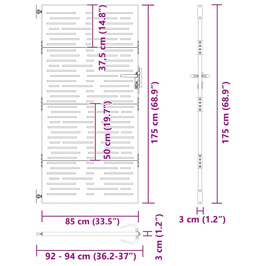 Garden Gate with Lock Black 85 x 175 cm Powder-coated steel