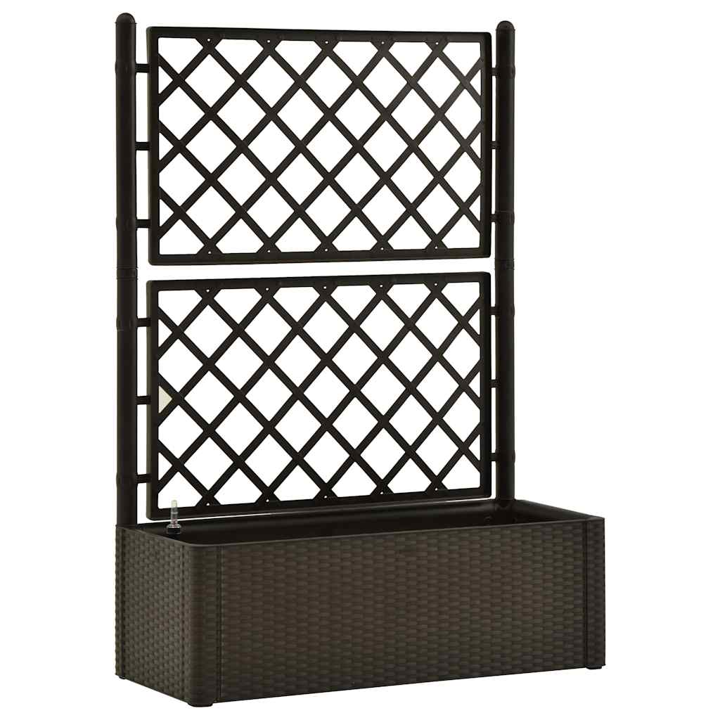 Create a lovely backdrop for your flowers with an elegant, functional and unique self-watering raised bed! This trellis planter has a large flower box that can accommodate a large number of green plants and flowers. The built-in trellis offers excellent support for climbing plants, like herbs, tomatoes, beans, etc. Made of robust UV, weather and frost-resistant plastic, it is suitable for indoor and outdoor use. The design resembles a deceptively real rattan structure. The material is washable and easy to clean. Additionally, this box can automatically water plants by wicking moisture from its 90 L water reservoir and has water overflow holes to prevent overwatering. The level indicator is included.