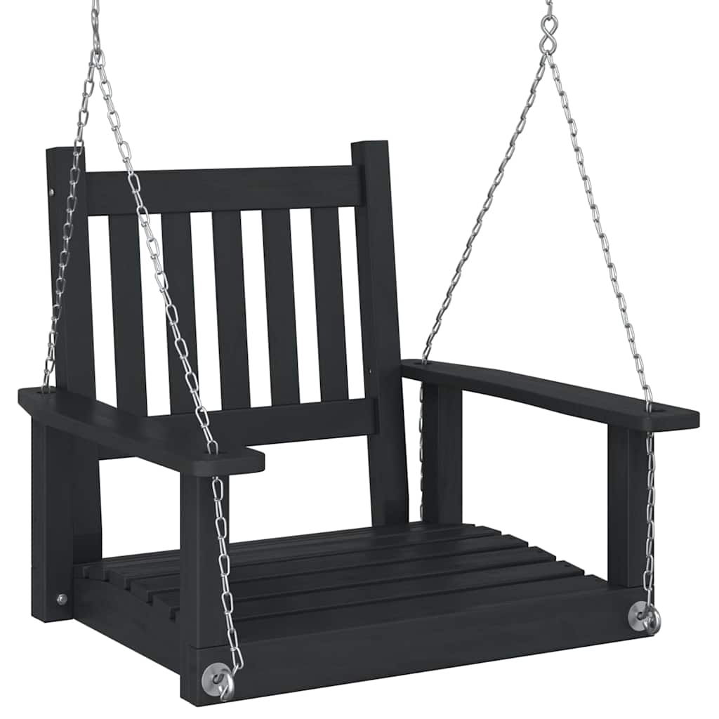 Garden Swing Chair with Metal Chains Black Solid Wood Fir