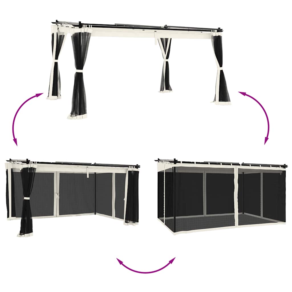 Gazebo with Mesh Walls Cream 4x3 m Steel