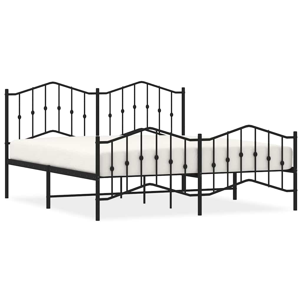 Metal Bed Frame without Mattress with Footboard Black 183x213cm