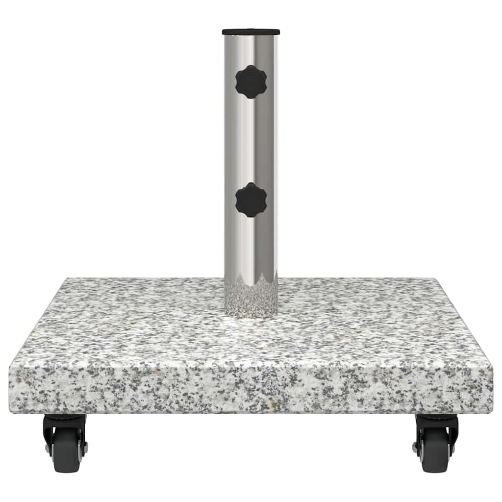 This Parasol Base provides the ideal anchor for outdoor umbrellas with its sturdy granite construction. Reflecting modern simplicity and practical functionality, it seamlessly adapts to any outdoor setting. The square design and balanced aesthetic make it a suitable fit for contemporary and minimalist spaces while ensuring stability against various weather conditions. Compatible with substantial umbrellas, it offers additional support and safety for your garden or terrace, granting peace of mind for leisure or gatherings. Materials: Made from premium granite, this parasol base guarantees durability against outdoor elements. The granite choice is not only visually attractive but also provides a weighty and strong structure to withstand wind and ensure your parasol remains firmly in place. Included Components: Equipped with lockable wheels, the parasol base can be easily moved and positioned as needed, bringing convenience and flexibility to your outdoor setup. These components add to its adaptability, making adjustments seamless and straightforward. Features /Function /Design: Its long-lasting build assures that this piece remains a reliable component throughout many summer seasons. The modern aesthetic, characterized by clean lines and lack of ornamentation, fosters a minimalist yet chic look that enhances your garden or terrace. Recommended Uses: Specifically crafted for garden and terrace environments, it's the perfect companion for those seeking shade in outdoor leisure settings. Whether hosting friends for a summer brunch or lounging with a book, its stability supports all umbrella needs. Care &Maintenance: Minimal care required; clean this base with a soft, dry cloth to preserve its polished appearance. Refrain from using harsh chemicals, ensuring its granite surface remains smooth and blemish-free, enhancing its lifespan.