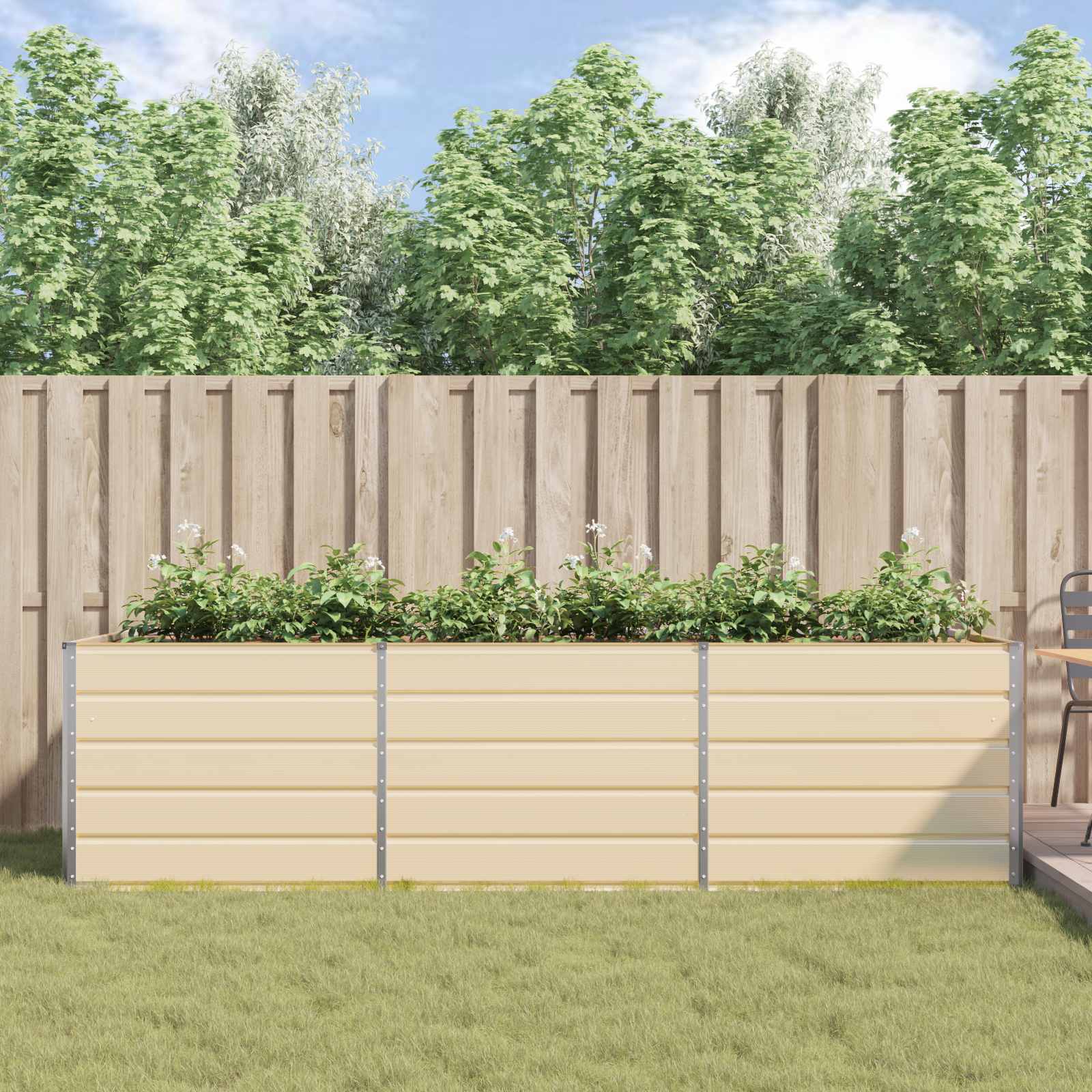 This Colored Steel Planter is perfect for adding a contemporary flair to your garden or terrace, with its sleek industrial style. Constructed from galvanized steel, it offers both durability and style, ensuring it stands the test of time. The planter provides ample space for diverse plant life, allowing green thumbs to get creative in their outdoor spaces. Whether showcased on a patio or garden nook, it promises to elevate the ambience, drawing together greenery and modern aesthetic. Ideal for gardening enthusiasts who value both form and function in their planter choices. Premium Steel Construction Ensures longevity and resilience against the elements. The galvanized steel material not only offers a sophisticated industrial look but also guarantees durability to withstand various weather conditions. Its robustness makes it an ideal choice for outdoor use, promising years of reliable service for your flora collection. Scenic Presence Provides an expansive environment for your plants to thrive, making it suitable for a variety of plant species, from ornamental grasses to vibrant flowers. This planter allows for creative landscaping designs, offering the flexibility to experiment with plant arrangements to complement your outdoor decor. Simple Assembly Requires only basic tools like a screwdriver. Designed with user convenience in mind, the setup can be accomplished efficiently, allowing you to quickly introduce this feature to your space. The requirement of two people for assembly ensures stability and a perfect fit, transforming both private gardens and communal terraces. Exclusive Outdoor Use Tailored specifically for outdoor environments, creating an attractive focal point on patios, deck spaces, or in open gardens. Its adaptability speaks to those who enjoy outdoor entertaining or desire a moment of relaxation amidst nature. This functionality caters to diverse gardening styles. Easy Maintenance Regularly wiped clean with mild soap and water, preventing any residue buildup. Its material makeup negates the need for frequent touch-ups, promising a low-maintenance piece within your outdoor furniture range. Following simple care instructions, it guarantees long-lasting beauty.
