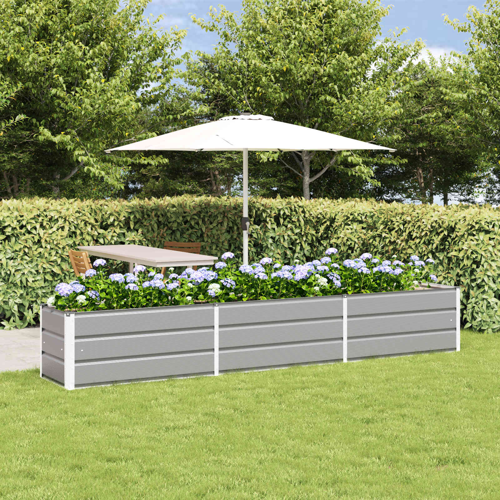 This industrial-inspired colored steel planter lends a modern touch to any garden or terrace, melding functionality with aesthetic appeal. Crafted from galvanized steel, it promises durability while exuding an authentic industrial charm. Its robust design is perfect for outdoor spaces, enhancing both contemporary and traditional settings. Robust Galvanized Steel: Constructed with precise craftsmanship, the galvanized steel not only ensures the planter's longevity but also withstands the outdoor elements. Its raw finish adds a modern vibe expressive of an industrial look. Included Components: The planter comes fully equipped as a standalone unit, perfect for housing various plants. Its minimalistic design aligns seamlessly with urban and rural outdoor spaces. Ease of Assembly: To ensure stability and robustness, assembly requires two people and a screwdriver. The straightforward setup guarantees that the planter stands firm against winds or other outdoor conditions. Versatile Outdoor Use: Designed explicitly for gardens and terraces, this steel planter can transform any outdoor area into a visually cohesive space. Its versatility allows it to adapt well to different plant types and garden decorations. Care &Maintenance: Maintaining the planter's pristine look is simple. Wiping it down occasionally deters the build-up of dirt and debris, prolonging its polished appearance.