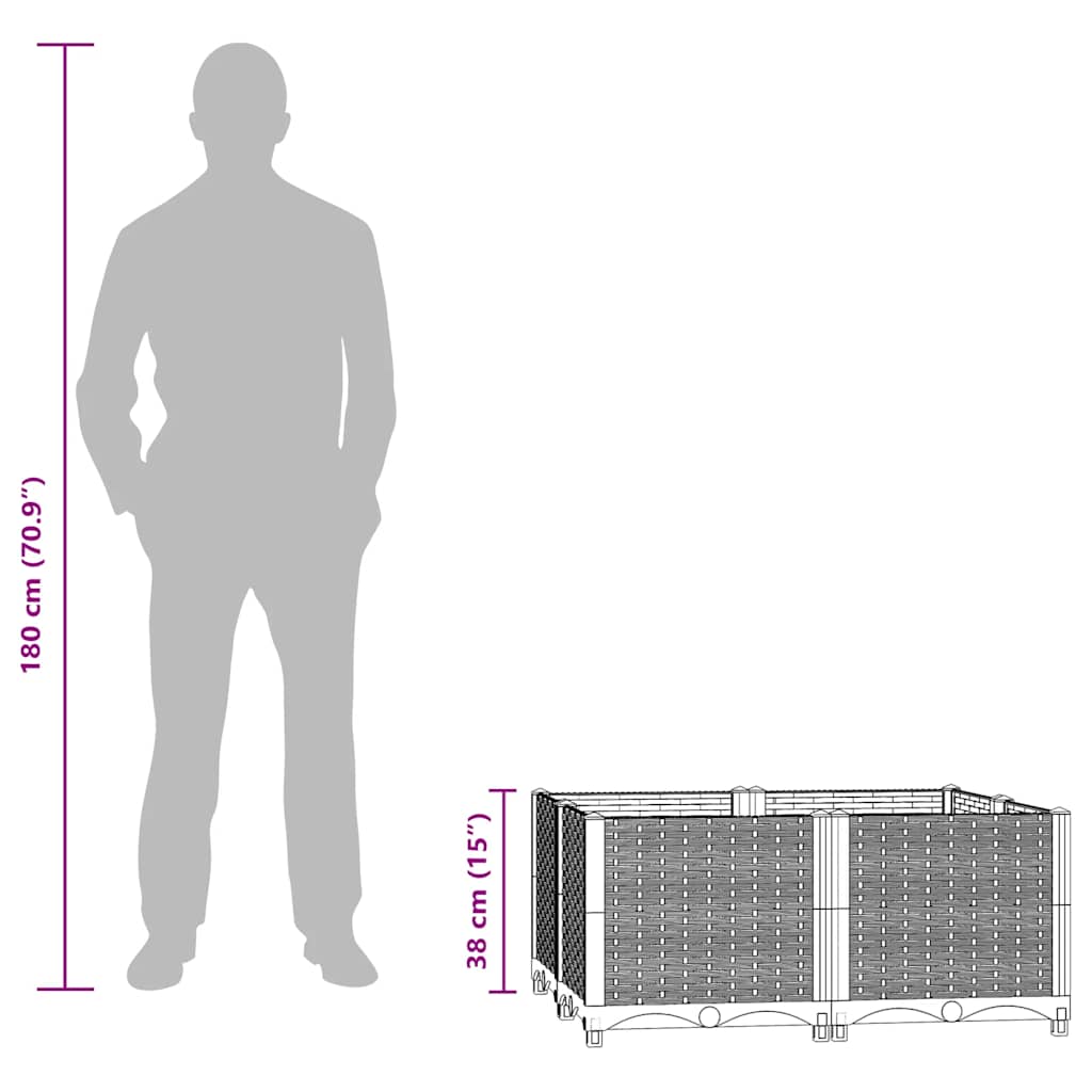 This raised bed is an excellent choice to grow a variety of flowers or plants, making it a great addition to your garden. This planter is made of polypropylene, making it sturdy, hard-wearing and suitable for daily outdoor use. The garden pot is deep and wide enough to hold a large amount of soil and provides ample space for your plants, vegetables, herbs and flowers. Create a lovely backdrop for your plants with this elegant planting bed!