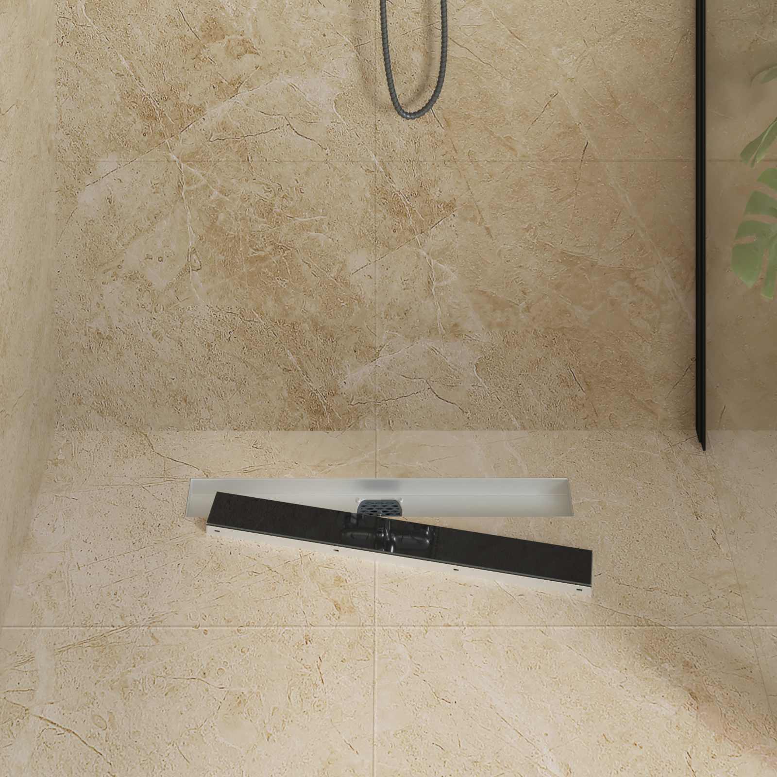 This Modern Shower Drain is a must-have for those looking to upgrade their bathroom with a touch of style and functionality. Built with a robust stainless steel composition, its sleek and minimalist design fits seamlessly into various bathroom decor, enhancing the overall aesthetic while efficiently channeling water. Ideal for contemporary bathrooms, this shower drain not only uplifts the visual appeal but also ensures superior drainage performance in any setting. Materials: The shower drain is crafted from stainless steel 304, known for its excellent resistance and durability. This material ensures that the drain retains its functionality and appearance, even after prolonged exposure to moisture. Its robust build helps prevent warping and wear over time, making it a reliable addition to any shower setup. Included Components: This kit comes with everything you need to complete your installation. Included is a practical hook for easy fitting and removal, a waterproof cloth to ensure a tight seal against leakage, and two adjustable height feet for easy leveling and alignment. Each component is designed to work together harmoniously, simplifying installation and guaranteeing long-lasting use. Adjustable Features: The height-adjustable design allows you to tailor the drain's position from 0-30 mm, providing incredible flexibility to accommodate different shower flooring needs. This adaptable feature ensures that water is captured and channeled effectively into the drainage system, minimizing standing water issues. Functional Modern Design: The rectangular shape and modern styling align with the latest in bathroom fittings, giving your space a clean and contemporary look. Its unobtrusive design is both aesthetically pleasing and highly functional, complementing a wide variety of shower setups and decor themes. Care &Maintenance: Maintaining the shine and functionality of this shower drain is straightforward. Simple periodic cleaning with non-abrasive cleaners helps preserve its appearance and ensures effective drainage. Avoiding harsh chemicals extends the drain's lifespan, maintaining its performance and sleek appearance.