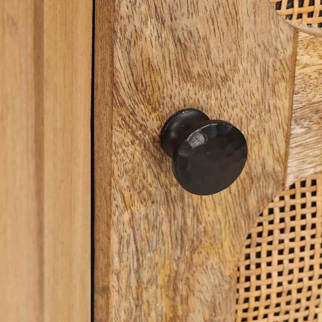 This sideboard elegantly bridges style and functionality, a staple for today's modern home. Its simple, elegant design makes it an excellent fit for any dining area or living room setting, allowing it to effortlessly blend into a variety of decors. Made of durable mango wood, this sideboard supports ample storage for your dining essentials, helping you keep spaces clutter-free and refined. With a visual appearance that is both sophisticated and understated, this storage unit lends a striking balance between form and function. Materials: Constructed from solid mango wood, offering supreme durability and an eye-catching aesthetic. This material not only provides a robust foundation but also adds a touch of natural warmth to any space. Engineered wood complements the primary material, ensuring the sideboard remains lightweight yet sturdy, enhancing its portability and adaptability to various setups. These materials promise long-lasting use and ease of maintenance. Included Components: The sideboard is equipped with hinge doors that open smoothly, offering easy access to stored items. Featuring a finished MDF back, this design ensures a presentable and professional look from all angles. Square metal legs provide unmatched stability and support, ensuring the safety of your items. Knobs on the doors add a touch of class, balancing functionality with a hint of elegance. Features /Function /Design: Emphasizing simplicity and utility, this sideboard channels the spirit of modern design. It focuses on crisp lines and a stripped-back aesthetic, making it a perfect fit for contemporary interiors. Its rectangular silhouette provides practical utility, while the contrasting textures create visual interest, blending seamlessly into varied room designs. Recommended Uses: Ideally suited for dining rooms, living areas, and entryways, this sideboard offers enough space for organising dinnerware, linens, or photographs. Its versatile design makes it adaptable to different environments, whether it serves to declutter a bustling family dining area or serves as a sophisticated piece in a chic apartment. Care &Maintenance: This sideboard requires minimal upkeep, which makes it an asset in keeping any space looking fresh. Simple cleaning with a dry cloth keeps dust and particles at bay, while avoiding harsh chemicals will preserve its natural finish. Consistent upkeep will assure prolonged use and maintained beauty of the piece.