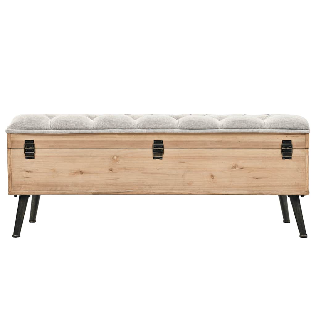 This unique storage bench in the shape of a travelling trunk will make a special addition to your decor with its vintage design. It can also be used as a pouffe or storage box. The comfortable bench is made of solid fir wood and its padded seat is upholstered in fabric. It has ample space for keeping a host of different items out of sight yet within reach. Its sturdy steel legs add to its rustic charm.