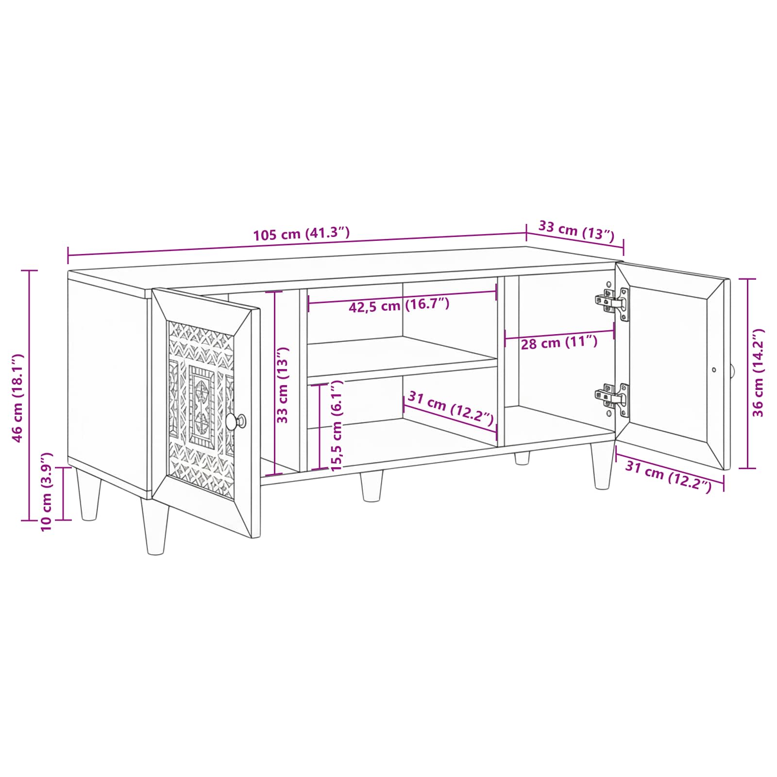 - Overall dimensions: 105 x 33 x 46 cm (L x W x H)
