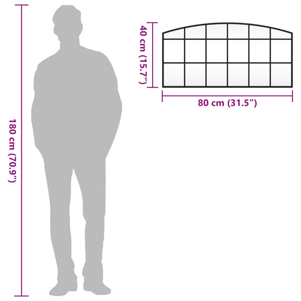 Wall Mirror Black 80x40 cm Arch Iron