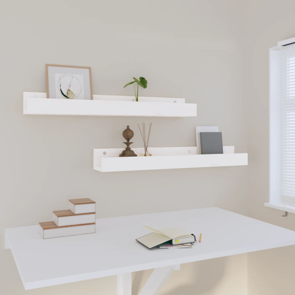 Wall Shelves 2 pcs White 80x12x9 cm Solid Wood Pine