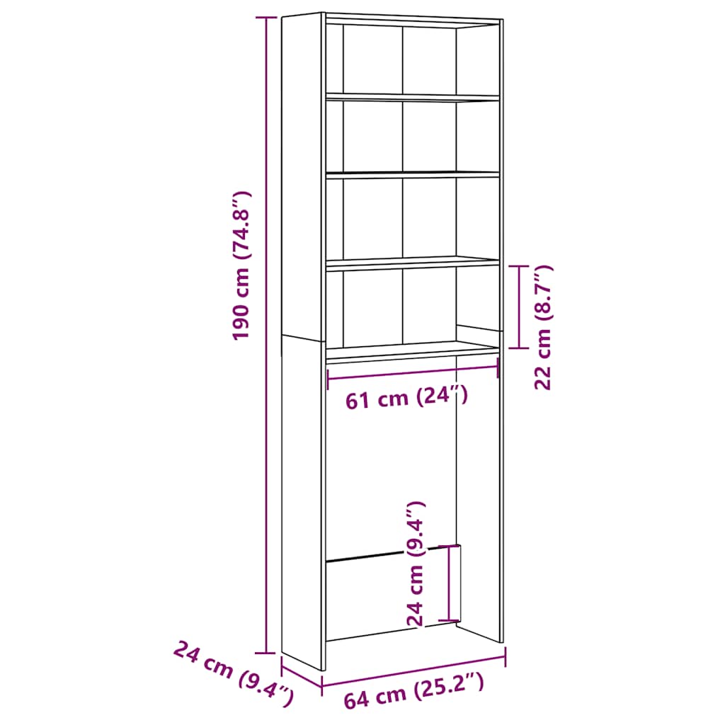 With this washing machine cabinet, you can create and optimally use additional storage space in the bathroom or laundry room.Premium material: The engineered wood is of exceptional quality with smooth surface and also features strength, stability and resistance to moisture.Sufficient storage space: The 4 compartments offer ample storage room for keeping your laundry utensils, cleaning supplies, toiletries and other items well organised and within reach.Space-saving function: This washing machine shelf can well utilise the wasted storage area above the washing machine or toilet.Easy cleaning: This washing machine cupboard cabinet is easy to clean with a damp cloth.Good to know:Screws and plugs for inside the wall are not included. We advise to find and use screws and plugs suitable specifically for your walls. If you're not sure, you can consult with a professional. Please read and follow each step of the instructions. Warning:To prevent it from tipping over, this product must be used with the wall attachment device (not provided).