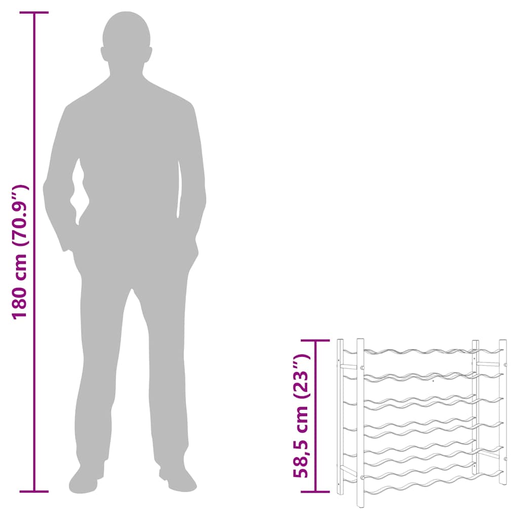This wine rack is convenient to help you organize and store your favourite wines. Ample storage space: The wine shelf has 6 tiers that can hold up to 36 bottles of wine. Each tier can hold 6 bottles.Modern design: This wine rack is also a trendy addition to store wine in modern kitchens, pantry and bars.High quality: The bottle holder is made of all metal and does not rust and deform. Additionally, its surface is very smooth, which can prevent scratching the bottle. WARNING:In order to prevent overturning, this product must be used with the wall attachment device provided.