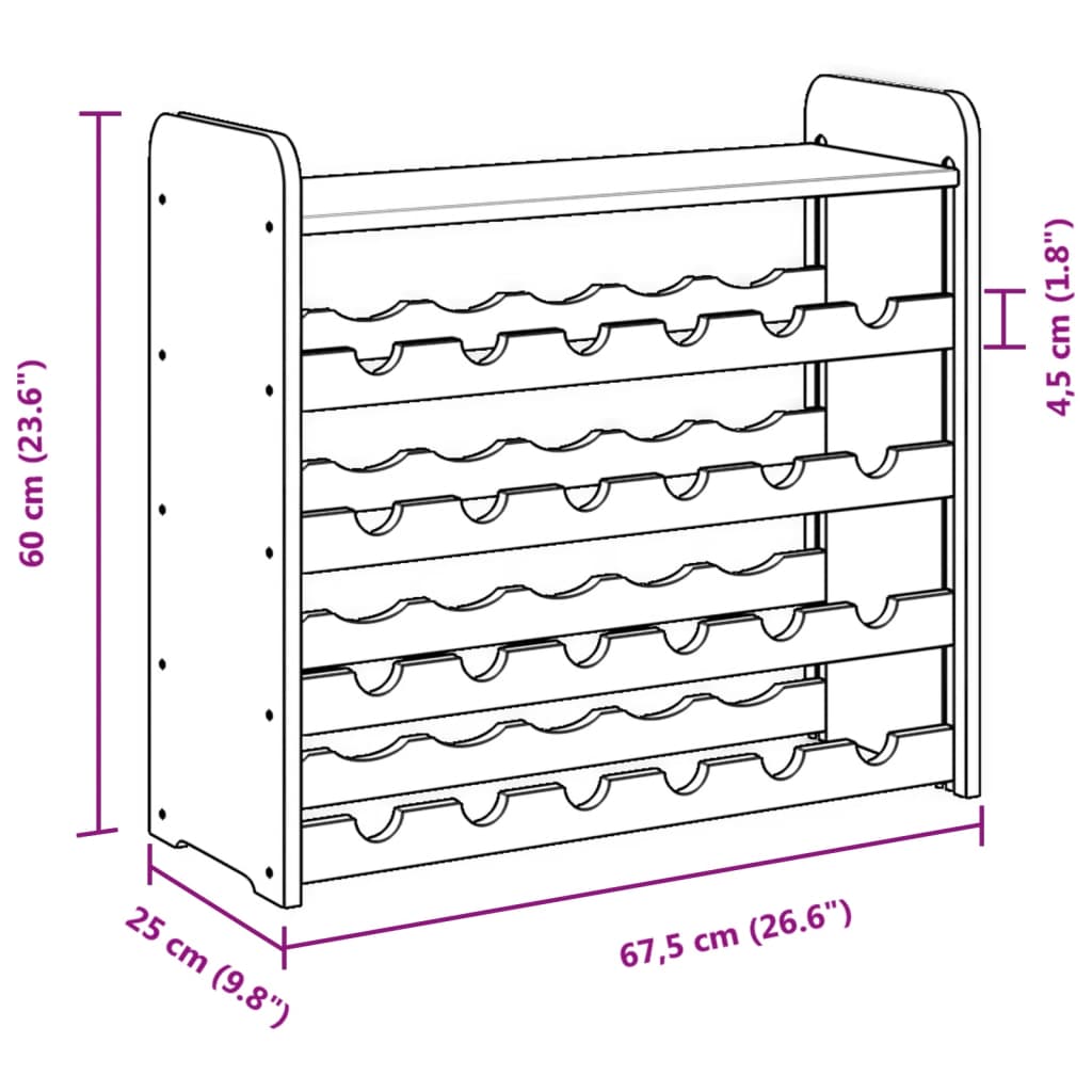 Wine Rack with Top Board 67.5x25x60 cm Solid Wood Pine