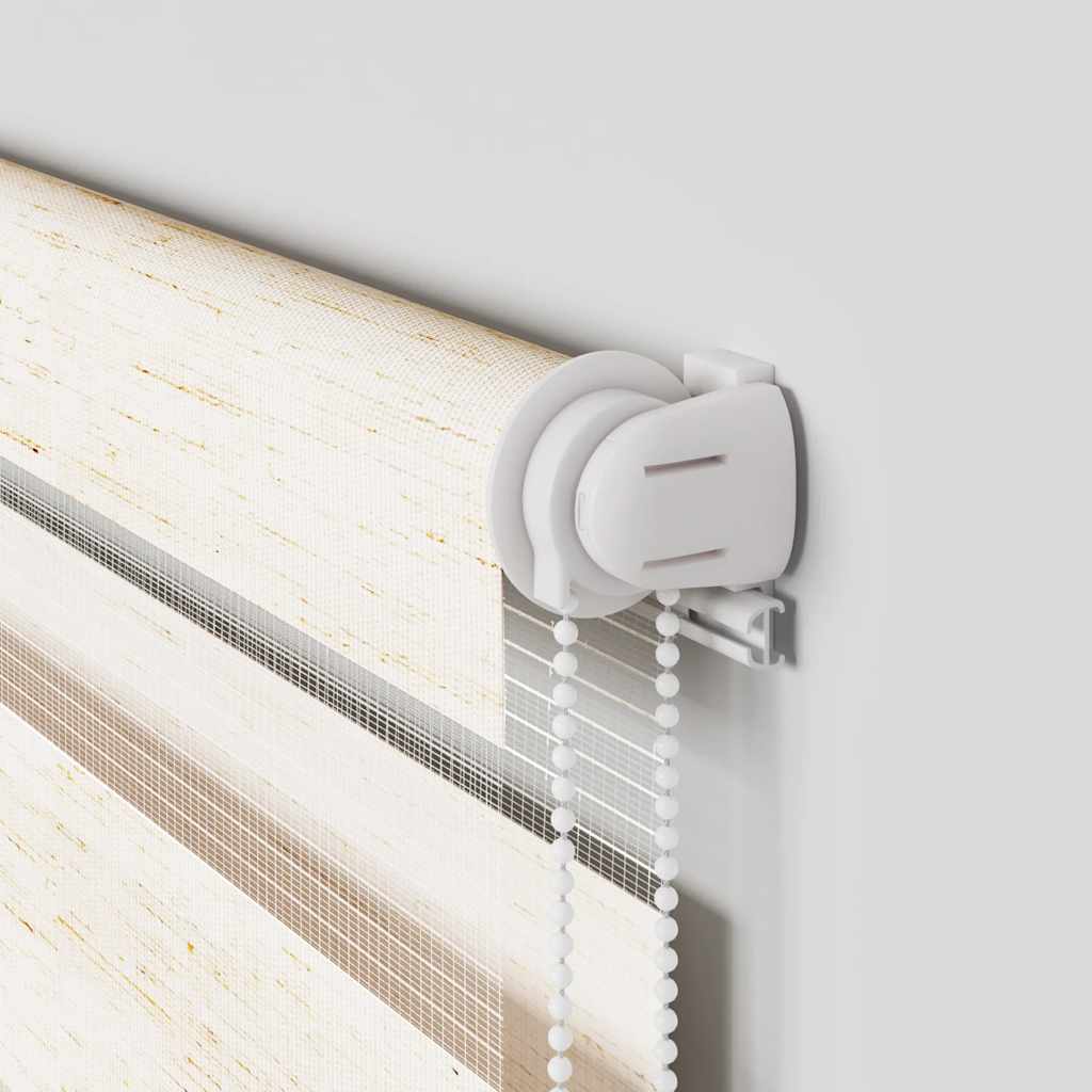 Elevate your room's style and functionality with this zebra blind, offering privacy and elegance. Durable and low maintenance: Made from 100% polyester, the zebra blind is built to last and resist wear and tear. They are also easy to clean, typically requiring light dusting or wiping with a damp cloth.Privacy and sun protection: The two-layer design features alternating transparent and opaque fabric panels. The light can be easily controlled using the chain hoist, allowing for seamless adjustment of the room's lighting from translucent to fully darkened.Two assembly ways: You can attach the zebra roller blind to the wall or window with screws or without drilling using clamping brackets, depending on your needs.Elegant design: Thanks to its sleek and modern pattern design, this zebra roller blind effortlessly complements a variety of room decor. You can use it in the living room, bedroom, office, and so on.Child safety and adjustability: The roller blind includes a chain connector that makes it easy to adjust the height according to your needs, and it also has a cord clip to add child safety. Warning:Keep cords out of the reach of young children. Cords may become wrapped around a child’s neck. Good to know:Before buying blinds, start by measuring your window glass. Just a friendly tip: the fabric is a bit narrower than the total width, including the brackets.To make sure your new blinds provide complete coverage, just add 4,1 cm to the width of the window glass when calculating what to order.